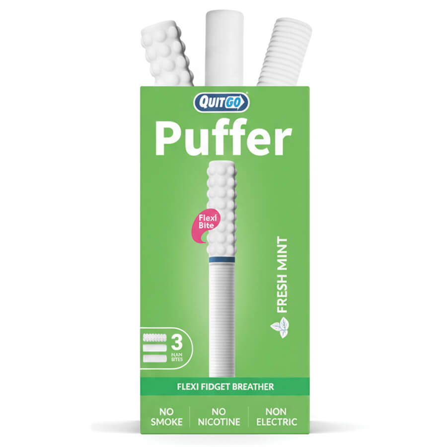 The QuitGo® Contoured Air Puffer in Fresh Mint is engineered with advanced shapes—bumpy, smooth, and rings—for deeper satisfaction and craving control. Nicotine-free and premium built to support smoking and vaping cessation naturally.